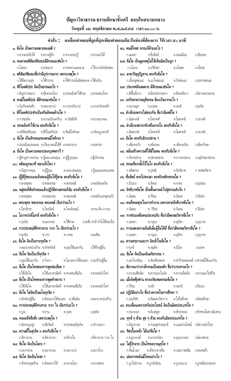 ข้อสอบจริง สอบวันที่ ๑๒ พฤศจิกายน ๒๕๕๗ เวลา ๑๓.๐๐ - ๑๓.๕๐ น.