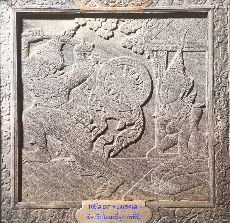ศิลาจำหลัก เรื่องรามเกียรติ์ แผ่นที่ ๑๐๕
